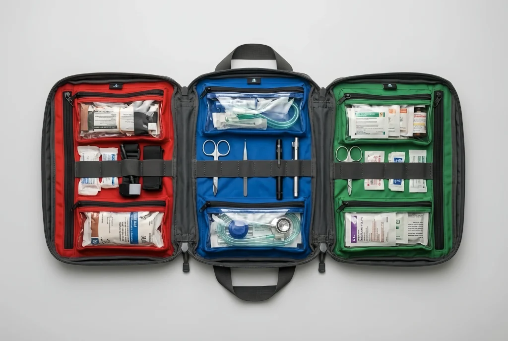 Engineered with multiple specialized compartments, transparent pouches, and elastic loops to secure supplies of various sizes. Color-coded sections enable quick identification during emergencies. Whether for home use or professional settings, this intelligent organization system ensures critical supplies are always accessible when seconds count.